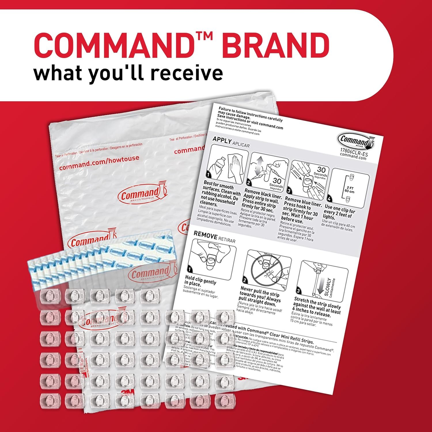 Effortlessly decorate your home with the Command Indoor Mini Light Clips from the Command Store, designed for damage-free hanging of Christmas lights, fairy lights, and cables. Featuring 45 clear clips and 54 Command Strips, these versatile wall clips securely adhere to a variety of smooth surfaces without leaving holes or sticky residue. Ideal for renters and dorm rooms, they offer easy installation and clean removal, making seasonal decorating and cable management a breeze. Transform your space without worrying about damage or mess.
