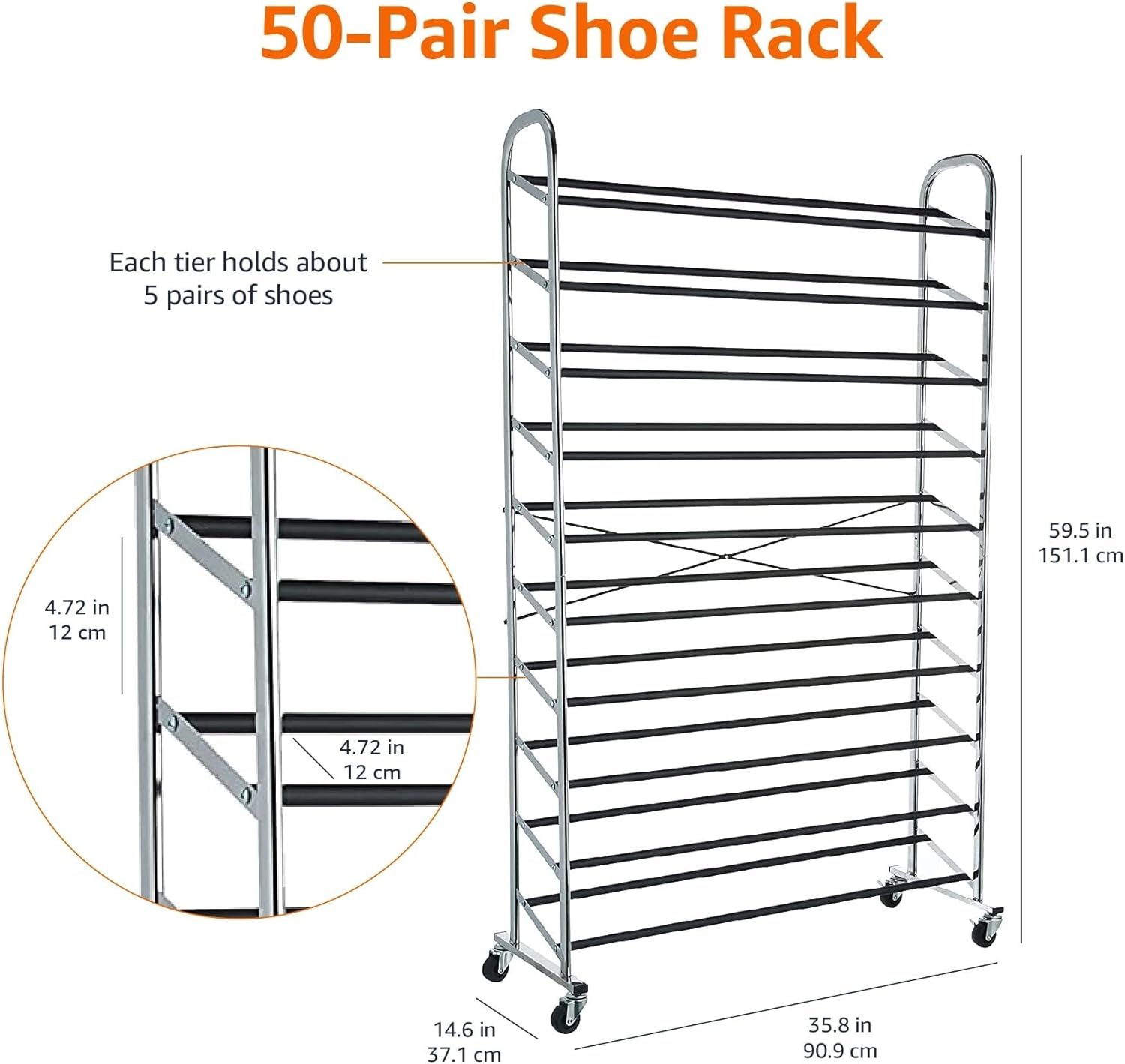 • High Capacity: Holds up to 50 pairs, making it a large capacity shoe rack perfect for bigger households or collectors.